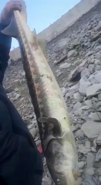 Gümüşhane’de enerji üretimi amacıyla kurulan Torul Baraj gölünde nesli tehdit altında olan koruma altındaki 100 yıl yaşayabilen Mersin Balığı oltalara takıldı.