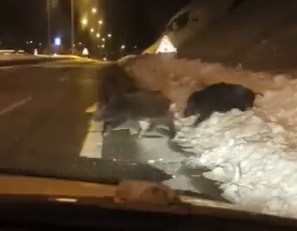Bingöl’de zorlu kış şartları nedeniyle yiyecek bulamayan 15 yaban domuzu, yerleşim alanlarına kadar indi. Bingöl-Genç karayolunda gece saatlerinde seyir eden bir sürücü, şehir merkezine çok yakın bir noktada domuz sürüsü ile karşılaştı. Domuz sürüsüne yol veren sürücü, o anları cep telefonu kamerası ile görüntüledi.