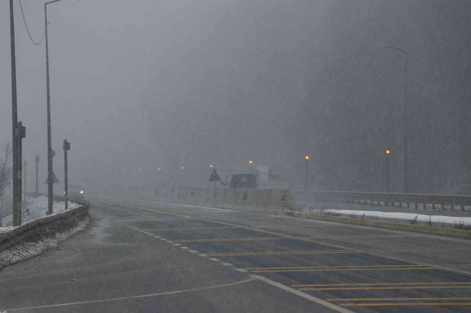 Bolu’da sabah saatlerinden itibaren etkili olan sağanak yağış Bolu Dağı geçişinde yerini kar yağışına bıraktı.