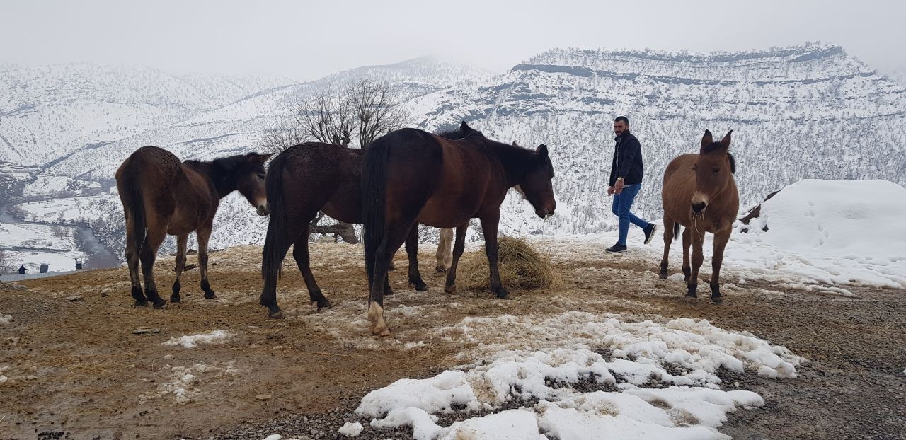 Hakkari’nin Derecik ilçesine bağlı Samanlı köyünde donmak üzere olan atlara Mehmet Yılmaz adlı vatandaş sahip çıktı.