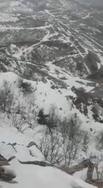 Engebeli arazide bir süre gezen sürü halindeki dağ keçileri bir süre sonra gözden kayboldu.
