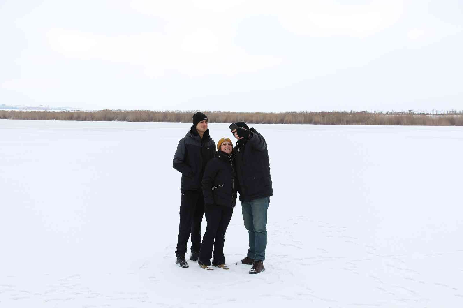 Ankara’nın Gölbaşı ilçesinde yer alan Mogan Gölü, hava sıcaklığının gece sıfırın altında -10 dereceye kadar düşmesinin ardından buz tuttu. Mogan Gölü’nün meşhur karabatakları ise gölde donmayan küçük bir alanda bir araya geldi. Vatandaşlar, soğuk havada besin ihtiyaçlarını giderememesinden kaygılandığı için karabataklara ekmek attı. Bir aile ise buz tutan gölde yürüyerek, özçekim yaptı. Buz tutan Mogan Gölü havadan görüntülendi.