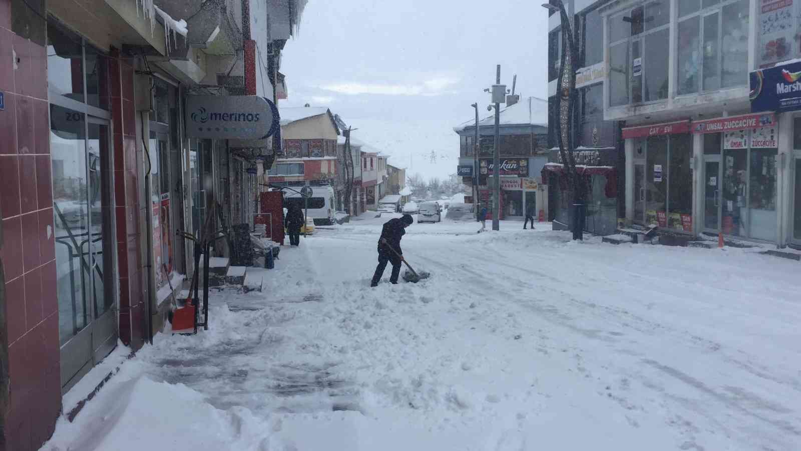 Bingöl’ün bin 940 rakımlı Karlıova ilçesinde dün akşam saatlerinde başlayan kar, bu sabah da devam etti. Yer yer tipiye dönüşen kar kalınlığı, ilçe merkezinde neredeyse 20 santimetreyi aştı. Sabah yeni güne uyanan ilçe esnafı kürekle iş yerinin önünü temizlerken, sürücüler de araçlarının üzerinde biriken karları attı.