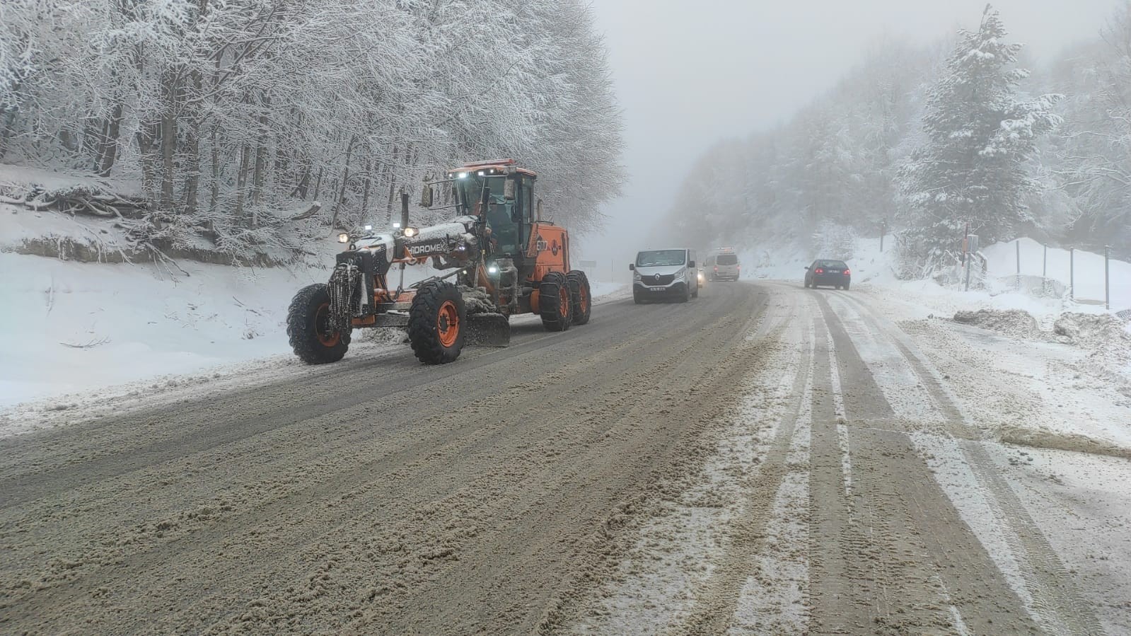 Kütahya’nın Domaniç ve Bursa’nın İnegöl ilçeleri arasındaki Domaniç Dağları’nda etkili olan kar, sürücülere zor anlar yaşatıyor.