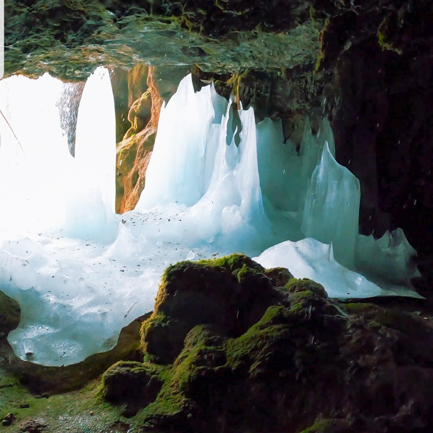 Göksun ilçesinde Hacıkodal Mahallesi’ndeki Kocabor Şelalesi’nin altında bulunan mağarada oluşan turkuaz rengini alan buz dikitler görenleri mest etti.