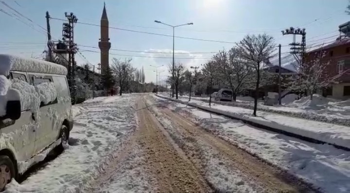 Malatya’da aralıklarla etkisini sürdüren kar yağışı kenti beyaza bürüdü. Özellikle kırsal kesimlerde etkili olan kar yağışı hafta sonu da etkisini sürdürdü. Akçadağ, Doğanşehir, Darende ilçeleri başta olmak üzere kentte kar yağışı hayatı olumsuz etkilerken, çiçek açmaya yüz tutan kayısı ağaçları için ise endişeli bekleyiş sürüyor. Doğanşehir ilçesi Kurucaova Mahallesi mevkiinde kalınlığı yer yer 20 santimetreyi bulan kar yağışının kent genelinde bir süre daha aralıkla devam etmesi beklenirken, meteoroloji bölgede hava sıcaklığının mevsim normallerinin 2 ila 4 derece altında seyredeceğini belirterek, zirai don uyarısında bulundu.
