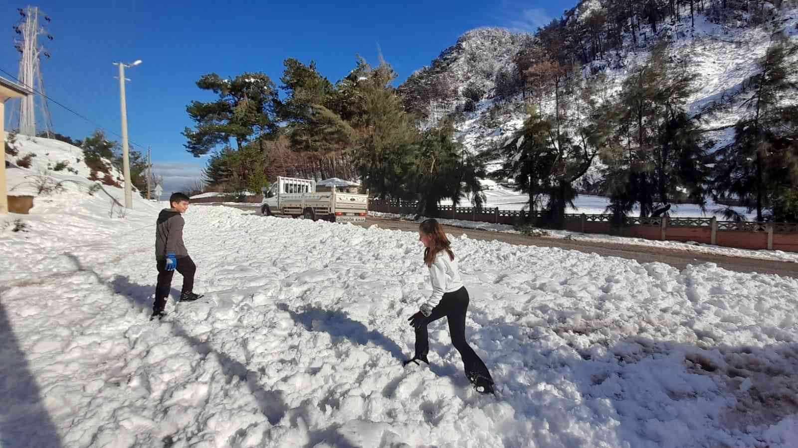Yoğun kar yağışının etkisi altına giren Türkiye’nin birçok bölgesinde kar sebebiyle zorluklar yaşanırken, Muğla’nın Marmaris ilçesinde kar ise vatandaşların eğlencesi oldu.