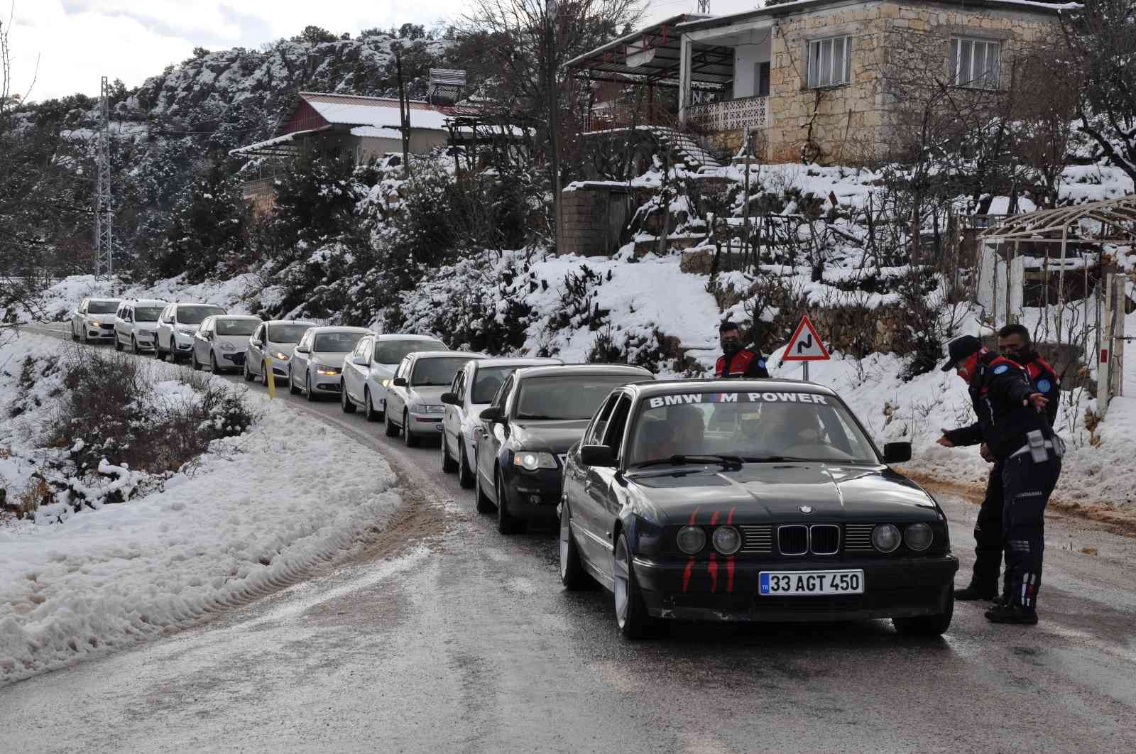 Mersin’in Silifke ilçesinin yüksek kesimlerinde kar yağışı etkili oldu. Mersin Büyükşehir ve Silifke Belediyesi ekipleri vatandaşların mağdur olmaması için kar küreme çalışmalarını aralıksız sürdürüyor. Jandarma yayla mahallelerine giden zincirsiz ve kar lastiği olmayan araçlara geçit vermiyor.