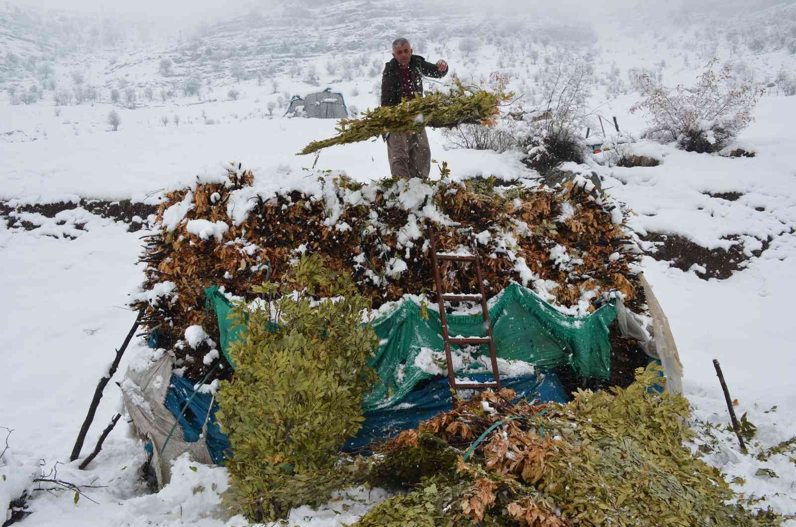 Şırnak’ta yaz aylarında dağlarda toplatılan meşe yaprakları kış aylarında hayvanlara yem olarak veriliyor.