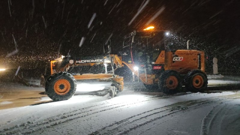 Yalova’da, akşam saatlerinde başlayan kar yağışı, Yalova-Bursa kara yolu Süpürgelik mevkiinde etkili oluyor. Karayolları 14. Bölge Müdürlüğü 147. Şube Şefliği ekipleri, yolun trafiğe açık tutulması için çalışmalarını aralıksız sürdürüyor. Bir yandan tuzlama yapılırken, bir yandan da bıçaklı kar küreme araçları ile yol temiz tutulmaya çalışılıyor.