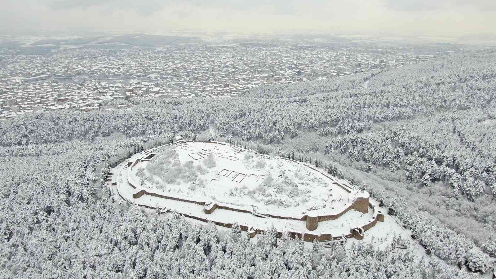 Tarihi Aydos Kalesi kar yağışıyla beyaza büründü