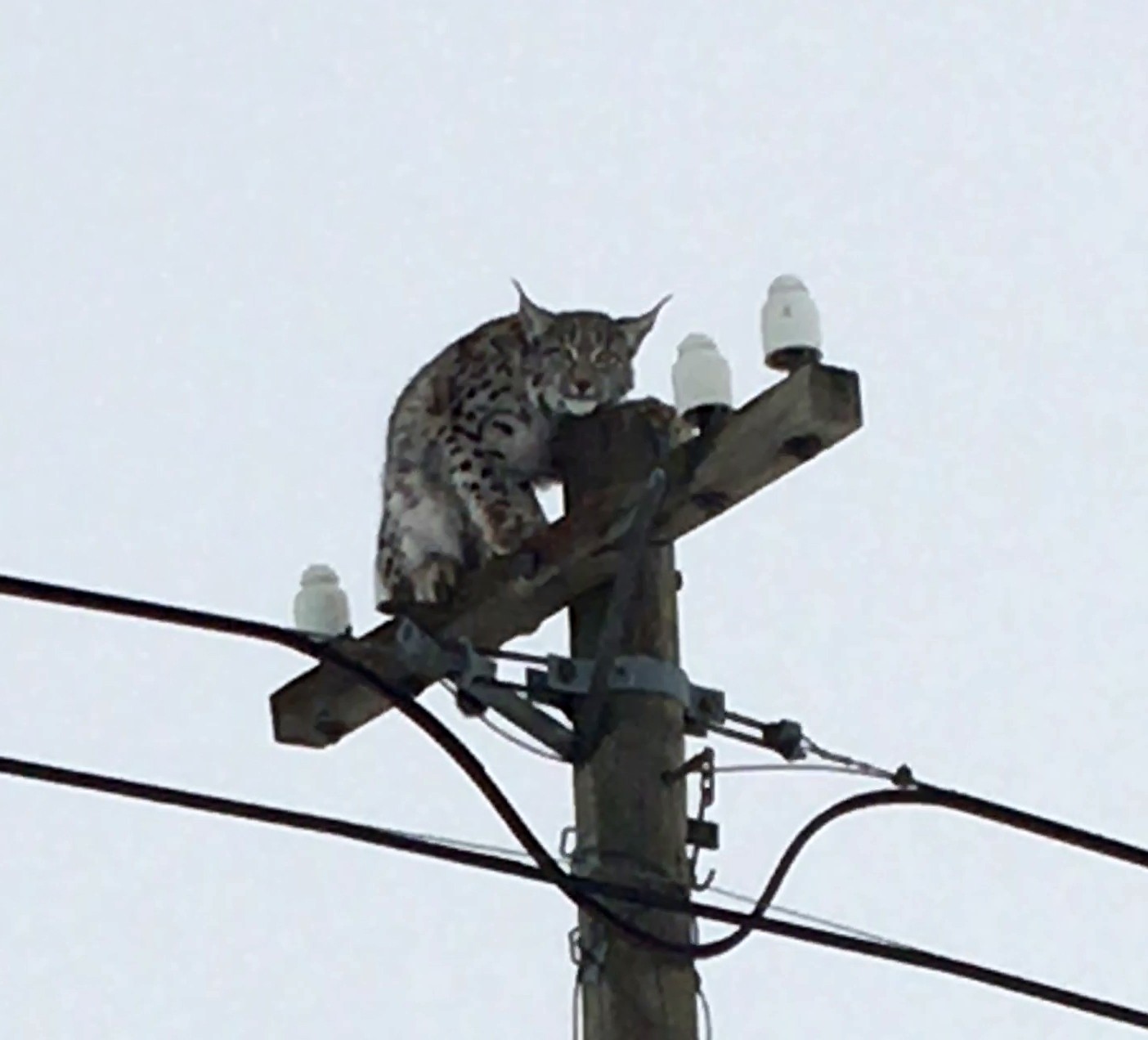 Telefon direğine tırmanan vaşağı “gel pisi pisi” diye çağırdı