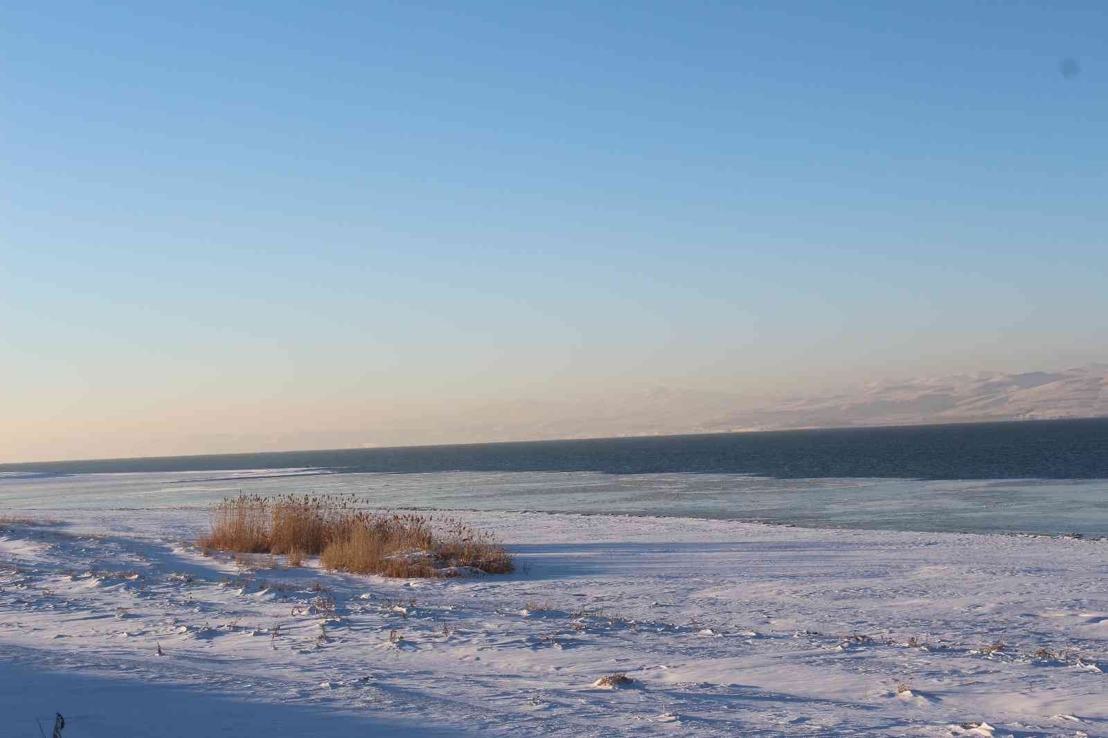 VAN (İHA) – Van’ın Muradiye ilçesinde hayatı olumsuz etkileyen aşırı soğuklar nedeniyle Van Gölü’nün yüzeyi buz tuttu.