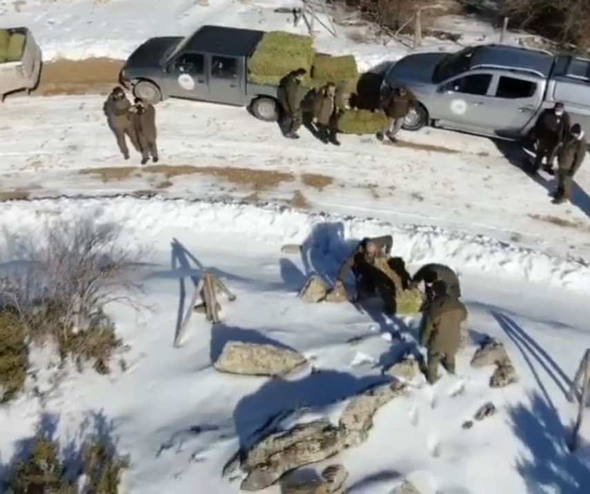 DKMP’ye bağlı ekipler Eskişehir’in yüksek kesimleri ile ormanlık alanlarında olumsuz hava şartlarından dolayı yiyecek bulmakta zorlanan yaban hayvanları için yemleme çalışması yaptı. Ekipler zorlu kış şartlarında yaban hayvanlarının bulunduğu bölgelere ulaşmak için zorluk bir sınav verirken, ardından önceden belirlenen noktalara saman başta olmak üzere buğday ve yiyecek bıraktılar. Ekiplerin olumsuz hava şartlarına rağmen gerçekleştirdikleri yemleme çalışması ise drone ile havadan görüntülendi. Görüntülerde ekiplerin yaban hayvanları için sırtlarında yem taşımaları ise görenlerin adeta içini ısıttı.