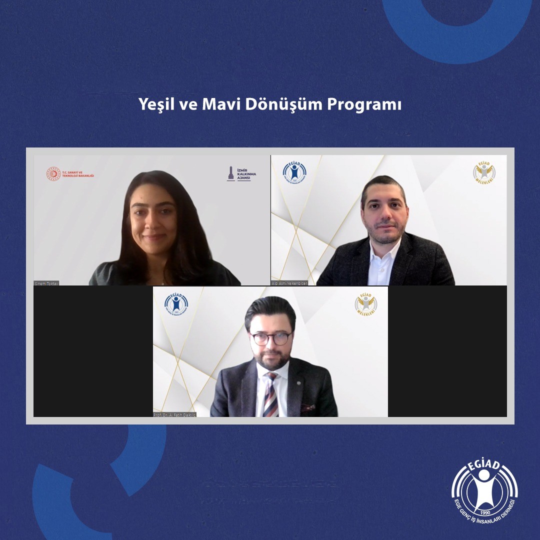 Zoom üzerinden online olarak gerçekleşen toplantının açılış konuşmasını yapan EGİAD Yönetim Kurulu Başkanı Alp Avni Yelkenbiçer, dönem teması olarak sürdürülebilirlik bağlamında yeşil mutabakat ve iklim krizi ile ilgili konuları önemsediklerini vurgulayarak, “Bizlere hem yol haritası hem de maddi destek sunan ciddi öneriler içeren bir webinar ile teoriden uygulamaya geçmek ve bizzat somut adımlar atmak adına çok önemli bir içerik gerçekleştirmekteyiz. Mavi olmadan yeşil olmaz. Çevre dostu olabilmek için önce mavinin, yani suyun temiz olması gerekir. Su temiz olmazsa; dünya temiz olamaz. Müsilaj sorunuyla boğuşurken gündeme geldi ama şimdilerde unutmuş olabiliriz. Yakın zamanda AB’nin Çevre Komiseri bunu net olarak ifade etti. Yeşil dönüşüm, mavi ekonomi olmadan mümkün olmaz. Daha sürdürülebilir, çevreci bir ekonomiye geçiş, ancak mavi ekonominin desteğiyle olabilir. Bu doğrultuda İZKA programının adını ve içeriğini çok önemli buluyorum. Mavi ekonomi dendiğinde denizleri ve denizlerdeki yaşam alanlarını korumayı anlamalıyız. Elbette buna balıkçılığı sürdürülebilir kılmak yani yanlış ve aşırı avlanmayı önlemek de dahil. Bununla birlikte suyun kirlenmesini asgari seviyeye indirmek için yenilenebilir, temiz enerjiye geçmek de mavi ekonominin kapsamında. Yani denizin, okyanusların enerjisini kullanarak enerji üretmek. AB çok yakında enerji ihtiyacının çok ciddi bir bölümünü sudan elde edecek çünkü Avrupa 2019 sonunda imzaladığı Yeşil Mutabakat ile birlikte zaten yeşil ekonomiye hızla geçiş yapıyordu. Şimdi mavi ekonomiyi daha da güçlendirerek, belli ki dönüşümü başka bir boyuta taşıyacak” dedi.