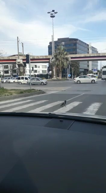 Yolun karşına geçmek isteyen karga uçmak yerine yürüyerek sağa doğru hareketlendi. Yayalar için yeşil yanmasıyla yaya geçidini kullanarak karşıya geçen karga onu görüntüleyenlere “Bazı insanlardan bile akıllı. Aferin kargaya” dedirtti.