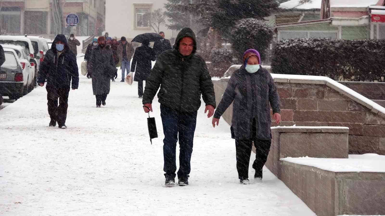 Yozgat’ta öğle saatlerinde başlayan kar yağışı kentte etkisini sürdürüyor.