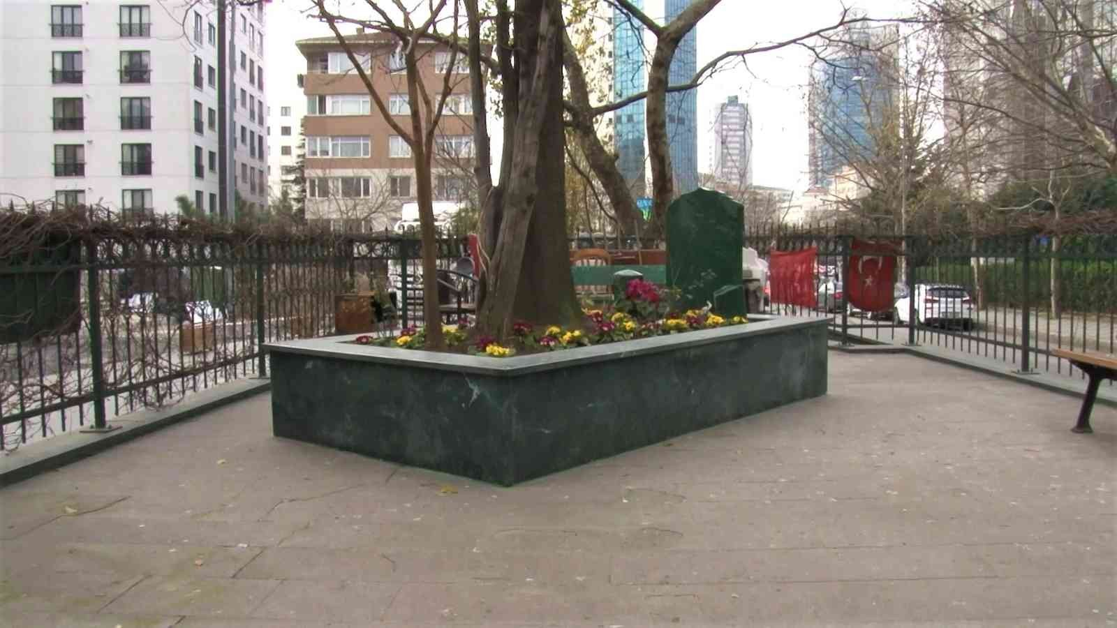 Ataşehir’de cadde ortasında bulunan türbe yoldan geçen vatandaşların dikkatini çekiyor.