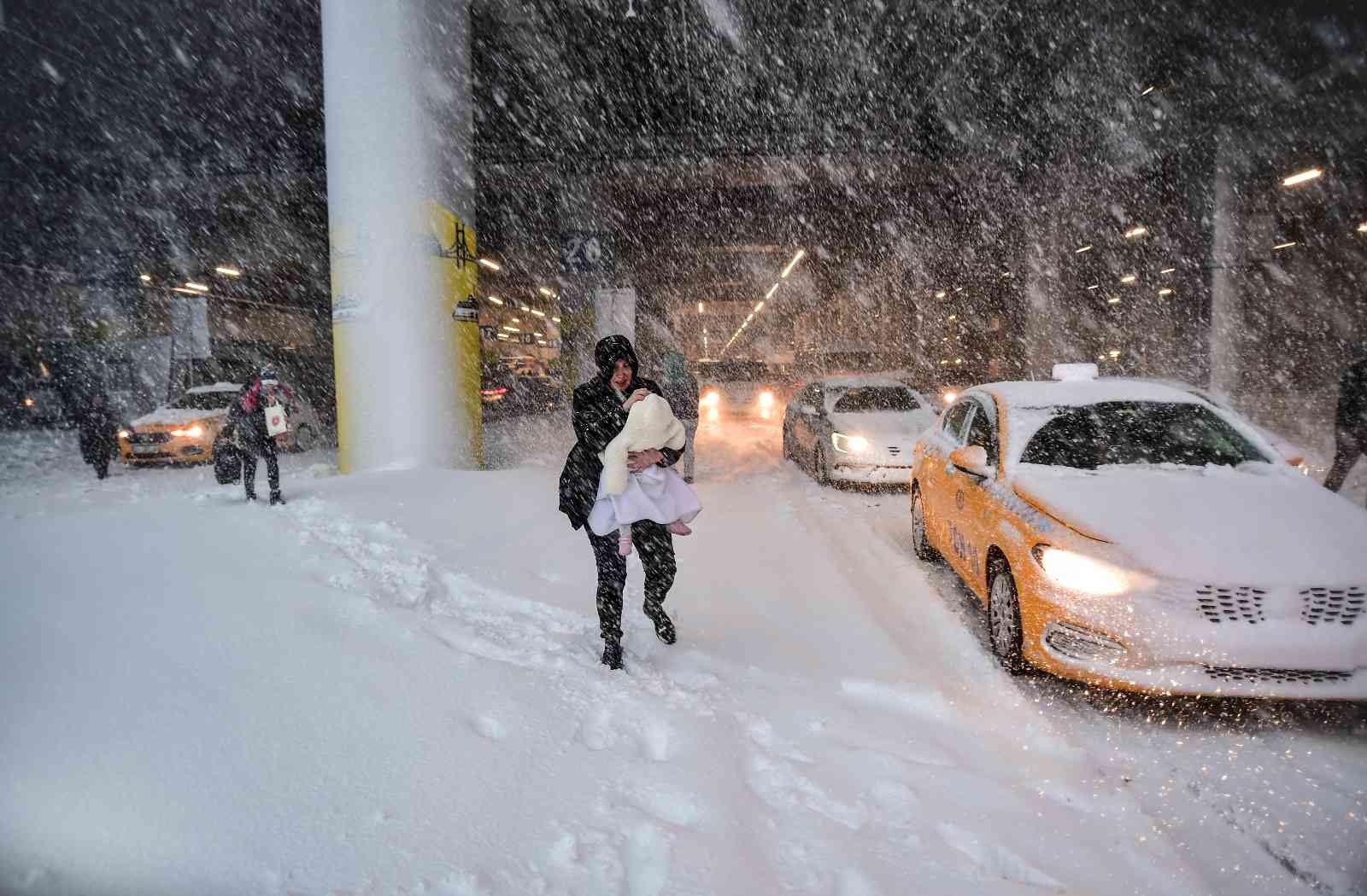 İstanbul’da sabah saatlerinden bu yana etkisini artıran kar yağışı ve tipi nedeniyle İstanbul Havalimanı’nda uçuşlar durduruldu. Kar yağışı nedeniyle havalimanına giden yollar da ulaşıma kapandı. İstanbul havalimanından mahsur kalan yolcular ve turistler objektiflere yansıdı.