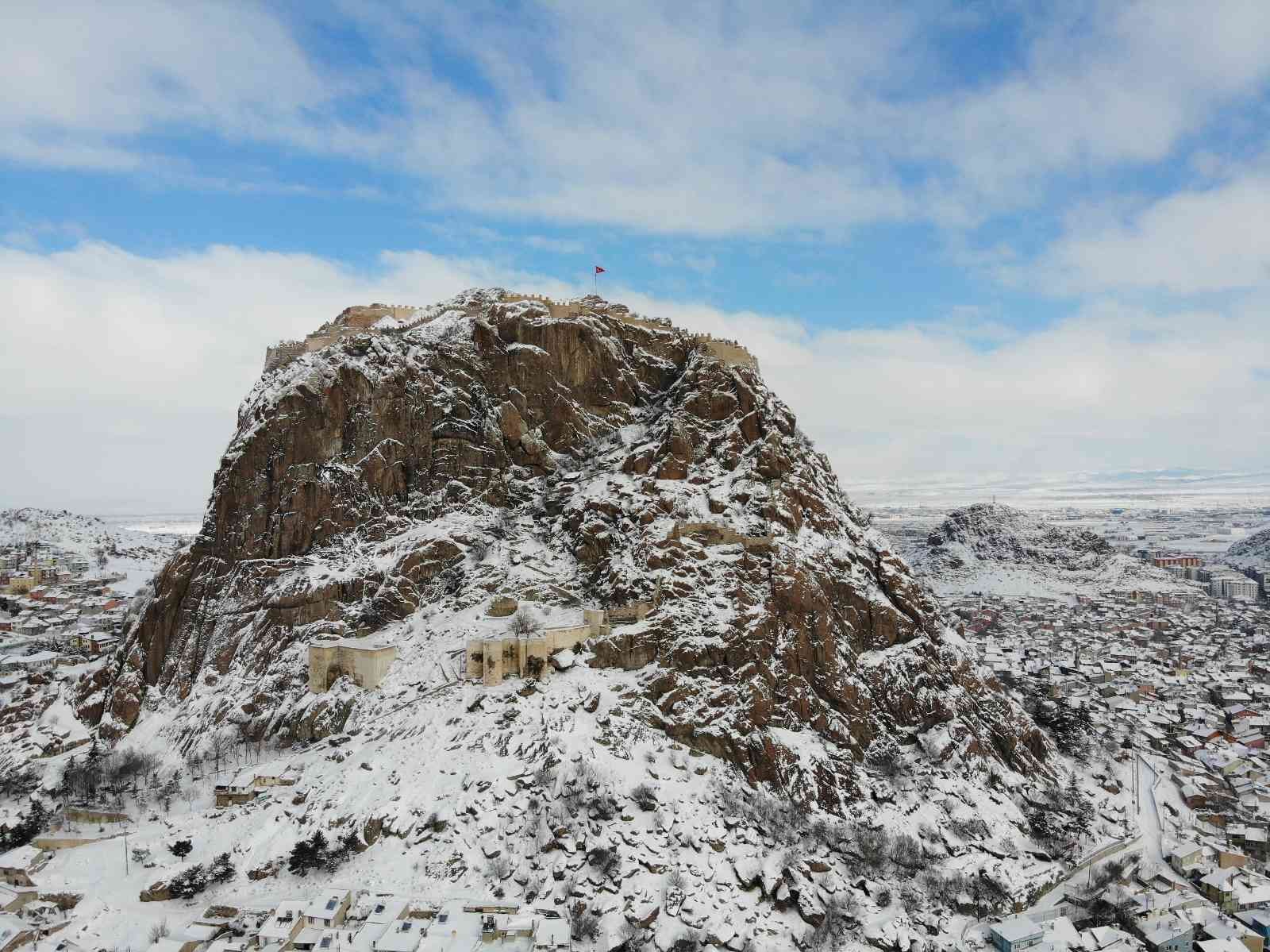 Afyonkarahisar’da yaklaşık 10 günden bu yana yağan kar yağışı sonrası tarihi Karahisar Kalesi adeta beyaz gelinliğini giyindi. Karla kaplanan kale görüntüsü ile seyrine doyumsuz bir manzara oluşturdu.