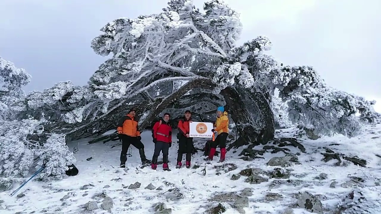 Keşif Yolcuları doğa yürüyüşü grubu Kazdağları’nda bin 300 metre yükseklikteki At Kayası, Buğdaylı mevkiinde gerçekleştirdikleri tırmanışı zorlu hava şartlarına rağmen başarı ile bitirdi. Kış Yürüyüş Grubu lideri Buket Şıvka’nın liderliğinde Burhaniye’den Ömer Aydemir, Rıfat Yeniay ve Edremit’ten Mustafa Şıvka, Ayvalık’tan Yıldırım Alp, Kazdağları’nda Eybek serisi bin 300 rakımlı Buğdaylı zirvesine tırmandı. Karlı, buz ve şiddetli rüzgara rağmen tırmanışa devam eden grup, 8 buçuk saat sonunda zirve yapabildi. Zirve bölgesinde – 15 dereceyi geçen sıcaklıkta ağaçların buz tuttuğu görüntüler adeta Sibirya’yı hatırlattı. Marmara’nın bitip, Ege’nin başladığı noktada çekilen görüntüler zorlu zirve şartlarını bir kez daha ortaya koydu.