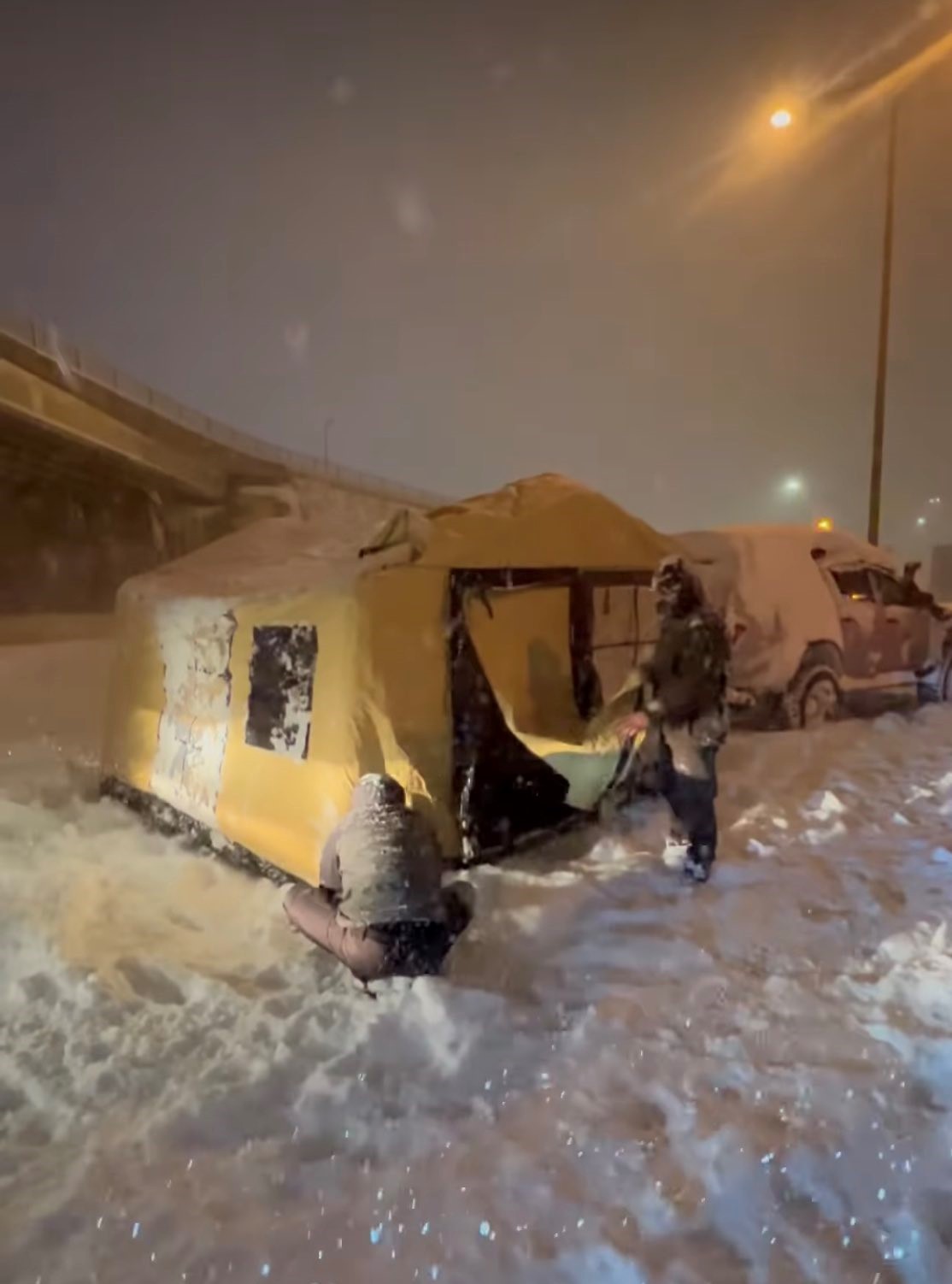 İstanbul istikametine seyir halinde olan ve kamptan dönen bir aile araçlarındaki çadırı çıkararak TEM Otoyolu’na kurdu. Aile dondurucu soğukta kurdukları çadırda ısınmaya çalıştı.