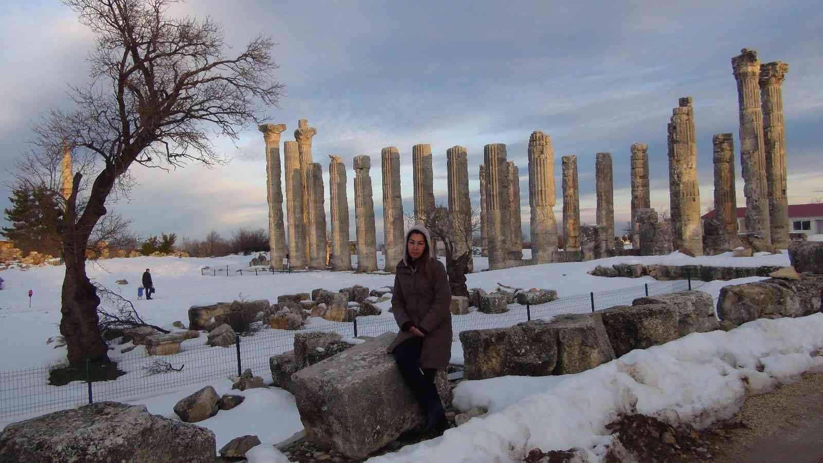Uzuncaburç’u görmeye gelen ziyaretçiler ise bölgenin kışın ayrı bir güzellik taşıdığını karla beraber tarihi alanların güzelliğine güzellik kattığını belirttiler.