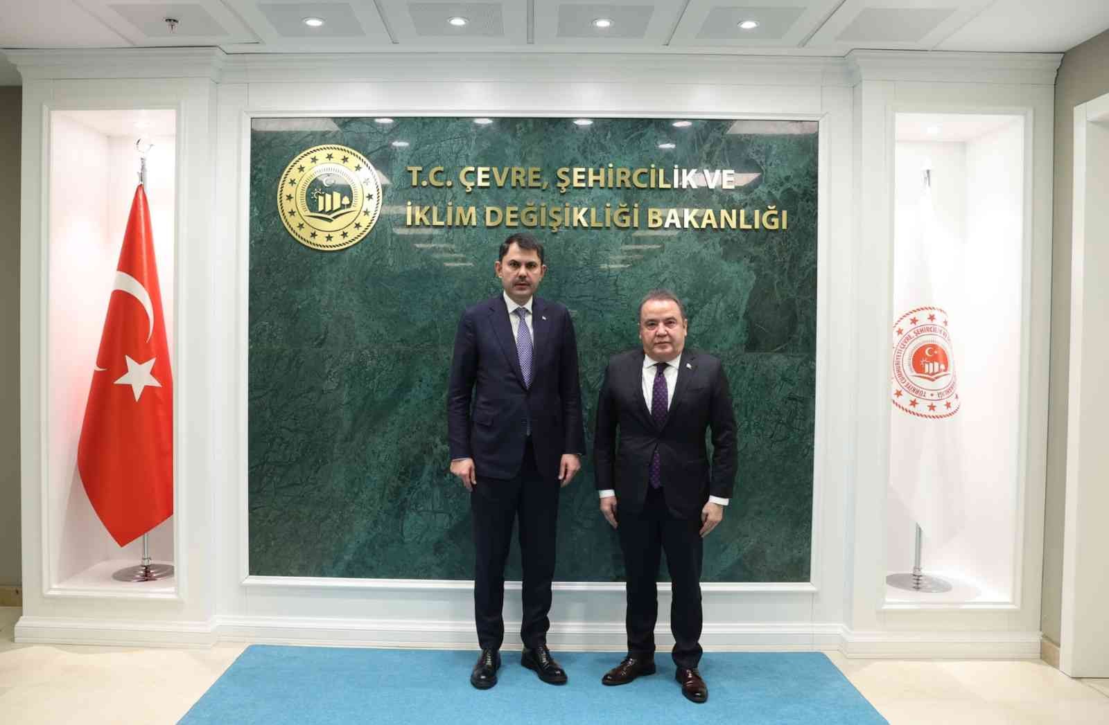 Antalya Büyükşehir Belediye Başkanı Muhittin Böcek, Çevre, Şehircilik ve İklim Değişikliği Bakanı Murat Kurum’u ziyaret ederek, Antalya kent bütününü ilgilendiren, 19 ilçeyi kapsayan 1/100 bin ölçekli çevre düzeni planının onay sürecini görüştü.