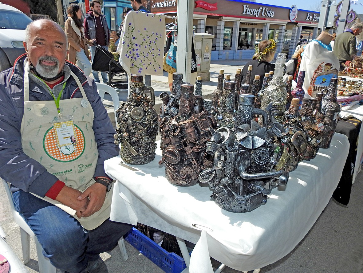 İzmir’in Çeşme ilçesinde yaşayan, üç yıl önce emekli olmasının ardından hobi olarak başladığı atıkları sanat eserine dönüştürme çalışmaları ile …