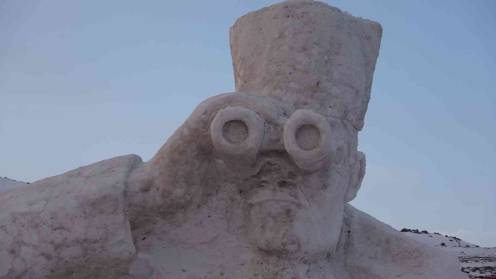 Ardahan’ın Çıldır ilçesinde, “Altın At Kristal Buz Festivali” kapsamında, Atatürk heykelinin yapımında kullanılacak karın kamyonlarla …
