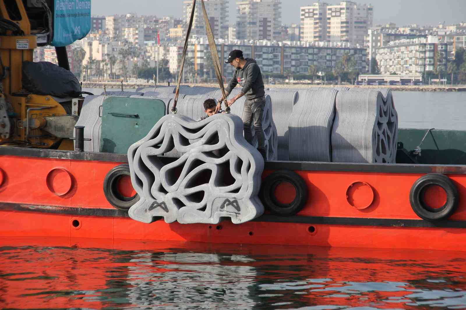 Türkiye’de bir ilk: 3D yazıcıyla üretilen yapay resifler Mersin’de denize bırakıldı