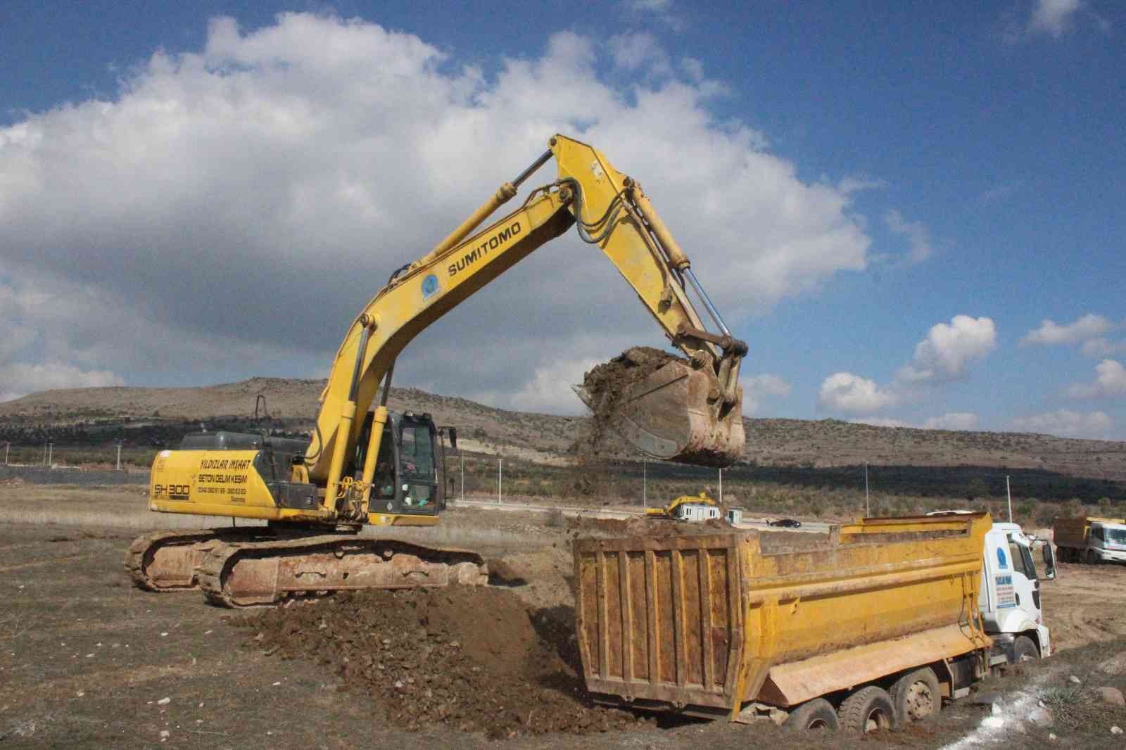Kilis’te Organize Sanayi Bölgesinde yapımına başlanan ve tamamlandığında 10 bin kişiyi istihdam edecek olan Tekstilkent için hafriyat çalışmaları …