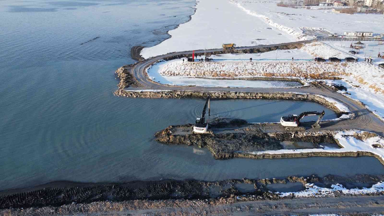 Van Gölü’nü kirlilikten arındırmak için başlatılan balçık ve dip çamuru temizlik çalışmaları soğuk geçen kış mevsimine rağmen hızla devam ederken …