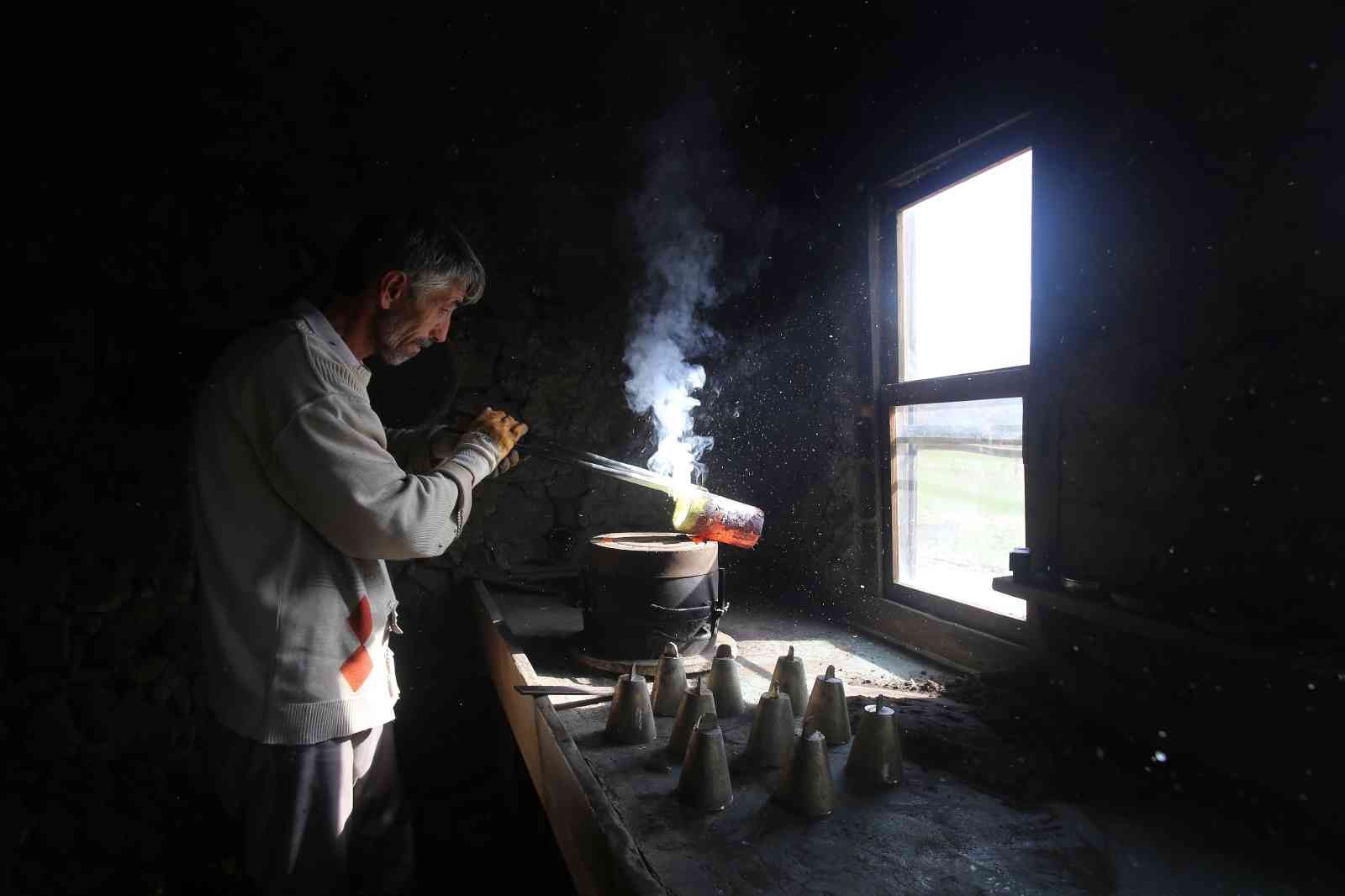 Gümüşhane’nin Kürtün ilçesinde yıllardan beri hurda musluklar eritilerek bin bir emekle hayvanların boyunlarına asılan 30 çeşit zile …