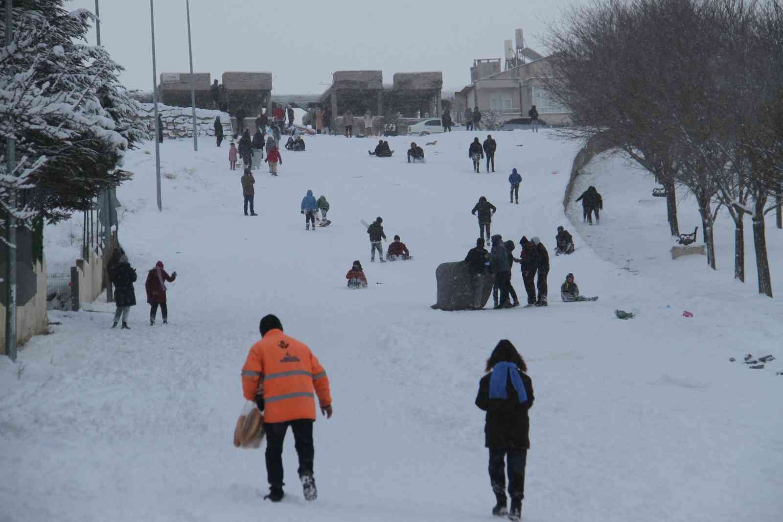 Konya’nın Beyşehir ilçesinde, belediyenin kayak tutkunlarının kayak keyfini günlerce yaşaması için küreme çalışması yapmadığı dik yokuşlu yol …
