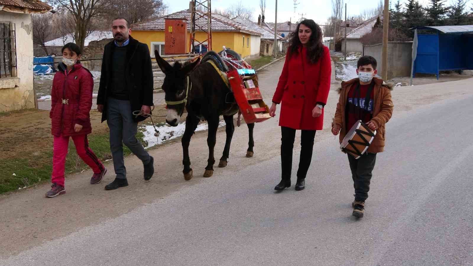 Yozgat’ın Sarıkaya ilçesine bağlı Küçükçalağıl köyünde görev yapan iki öğretmen, kırsalda yaşayan çocuk ve velileri kitapla buluşturmak için eşek …