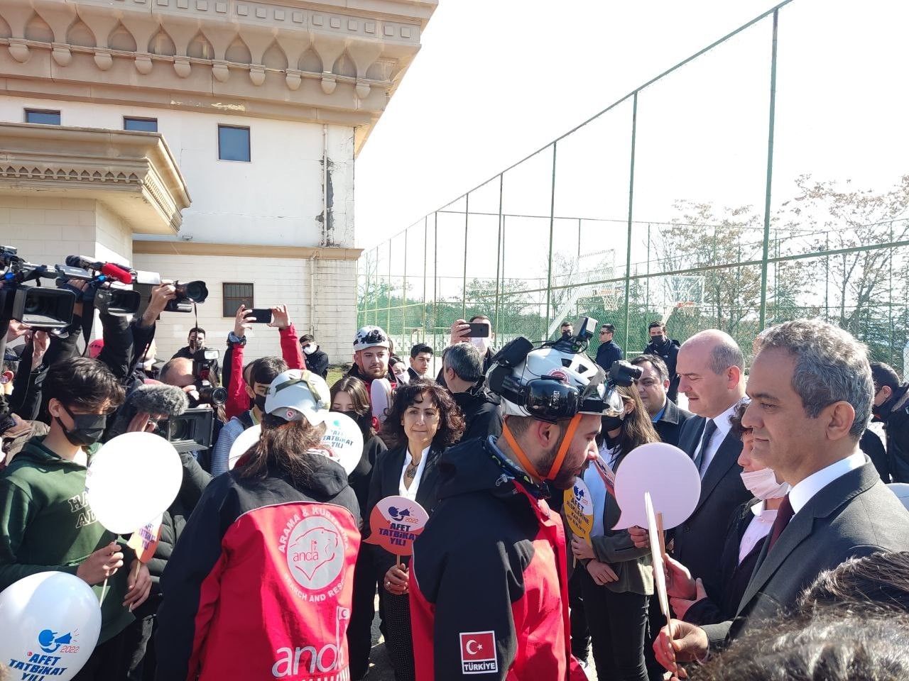 Milli Eğitim Bakanı Mahmut Özer ve İçişleri Bakanı Süleyman Soylu, 1-7 Mart Deprem Haftası kapsamında öğrencilerle birlikte deprem tatbikatı …