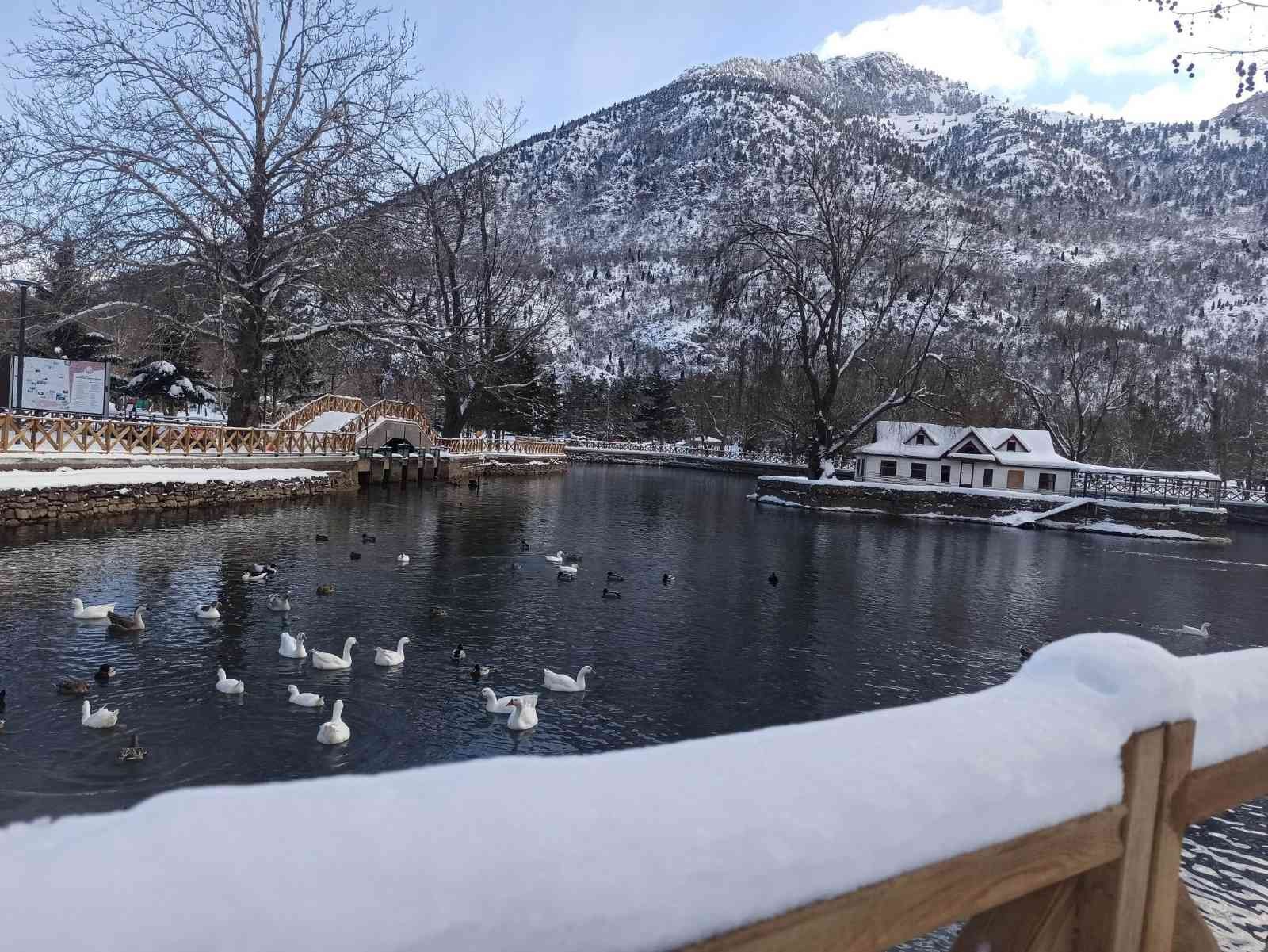 Konya’nın Seydişehir ilçesinde kar yağışı ve soğuk havalar hayatı etkilerken, ziyaretçilerin uğrak yeri olan mesire alanlarından Kuğulu Park …