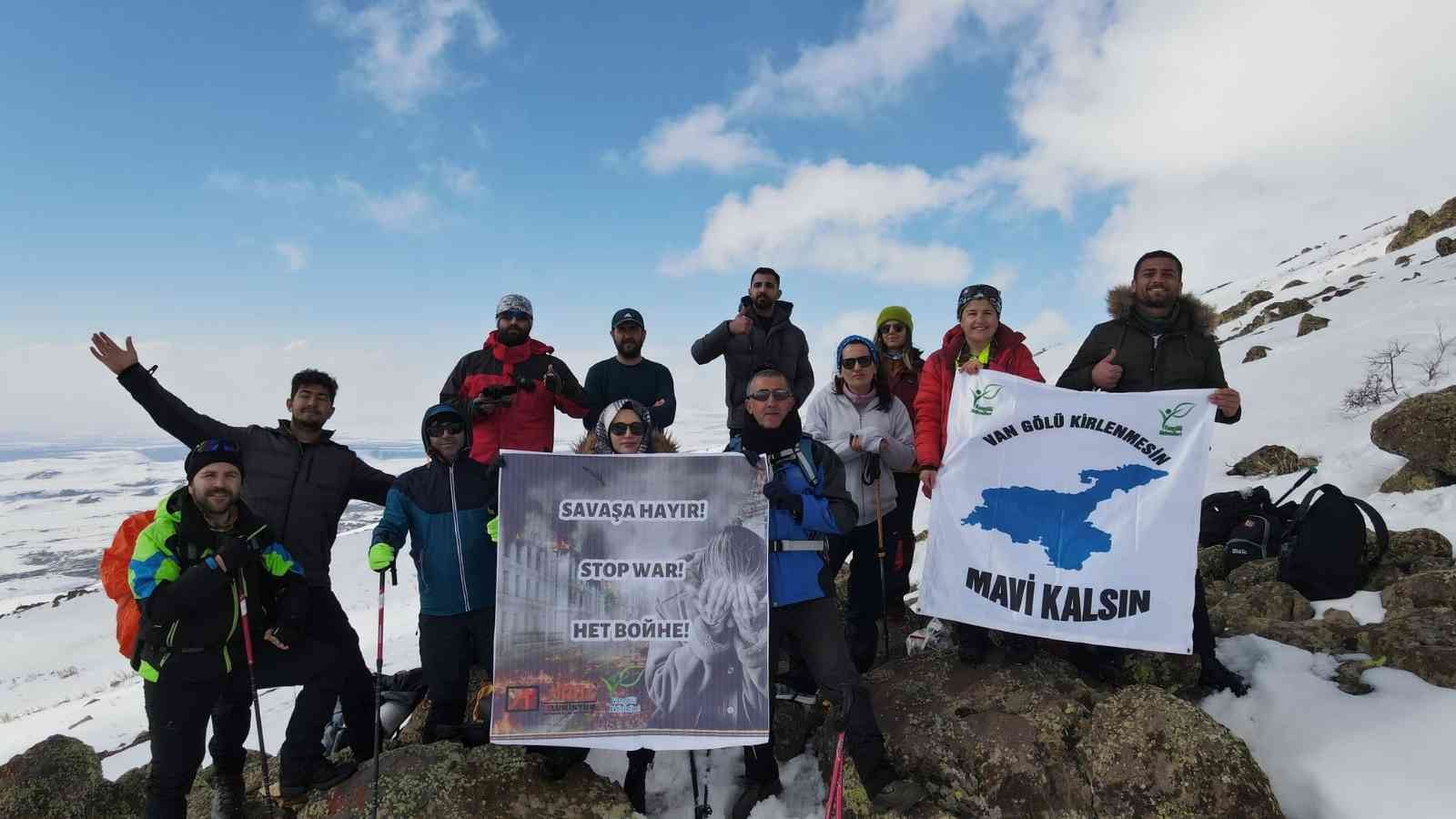 Vangölü Aktivistleri Derneği üyeleri, tırmanış yaptıkları 3 bin rakımlı Esrük Dağı zirvesinde ‘savaşa hayır’ çağrısında bulundu. Vangölü …
