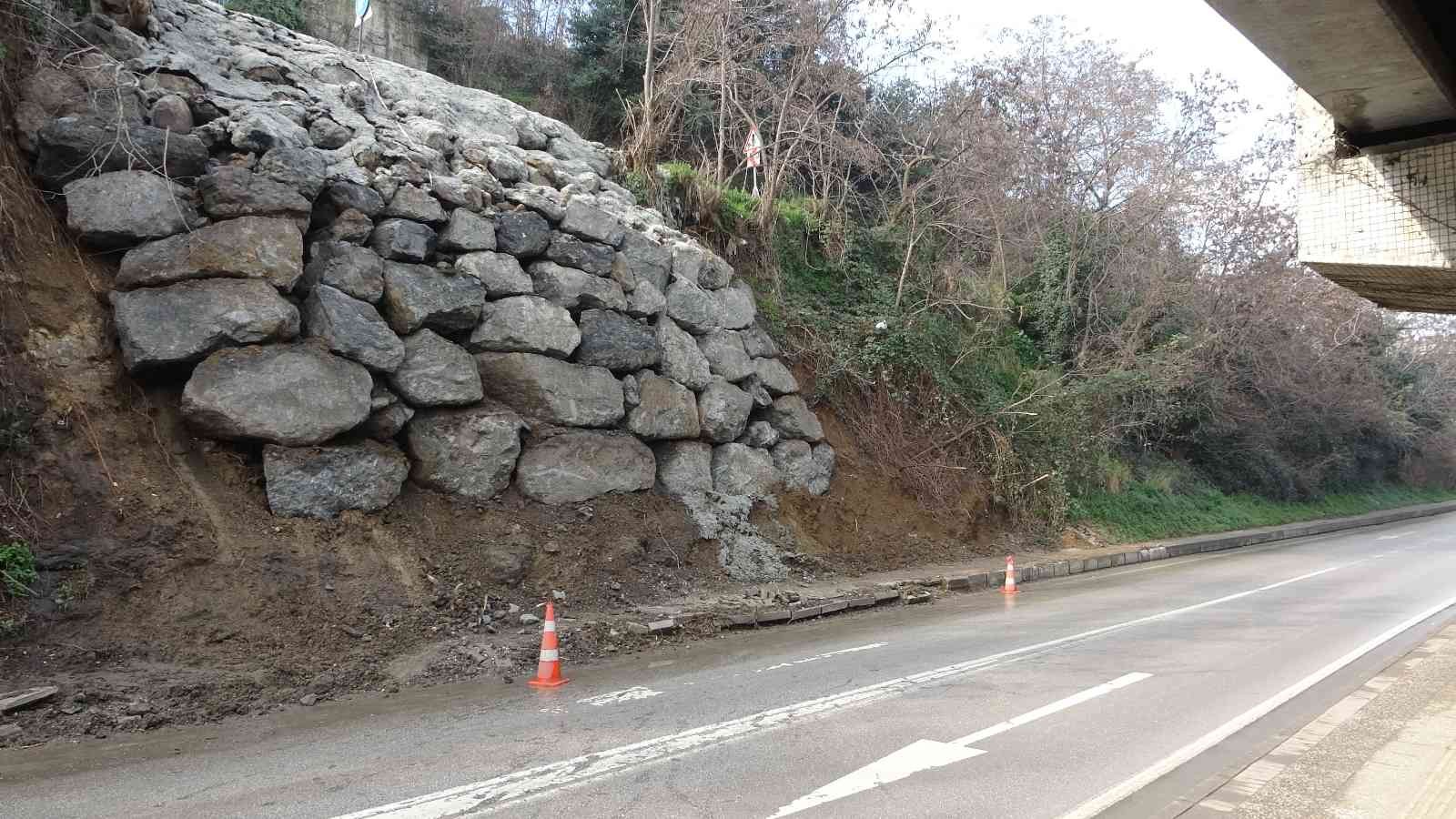 Samsun Büyükşehir Belediyesi Genel Sekreter Yardımcısı Metin Köksal, yol kenarında bulunan heyelanlı yamaca, yağmur suyu akışını keserek yol …